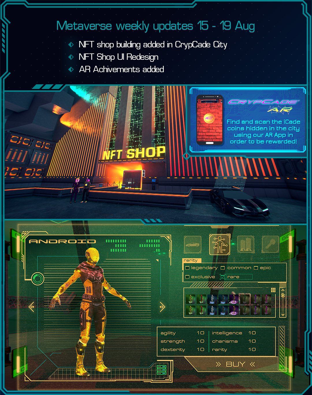 Begin your journey in the metaverse in Sector 1. Explore the city blocks, interact with NPCs, drive cars and enter unique buildings. Multiplayer, jetpacks and other amazing stuff coming soon. Sectors 2 (space station) 3 and 4 are being prepared for release by the end of 2022